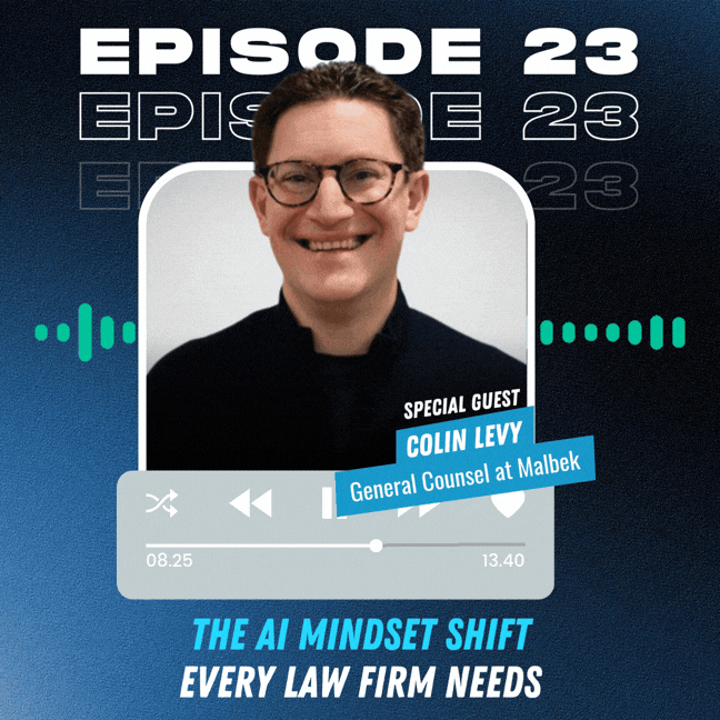 In this episode, we sit down with a leading voice in AI and legal tech - Colin Levy. We explore what lawyers should really be asking about artificial intelligence, and the mindset shift law firms need to make - from updating outdated workflows to rethinking how legal work is done. We also discuss why so many tech initiatives fail and how the next generation of lawyers is approaching AI.